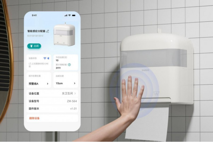 顺应这一趋势,SVAVO瑞沃推出全球首发智能感应分配器ZM-S64,将“感应取纸 + 智能补给 ”一体化方案引入理发店、美容院与高端健身房等美业高频用纸场景,为棉柔巾等细分耗材提供数字化、标准化的管理新路径。